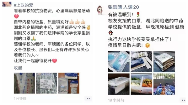 我院师生在得知此次抗疫物资是身边的同学所捐赠时,纷纷为张昊彦同学的行为点赞,自发地通过各类渠道表达对张昊彦同学的感谢。