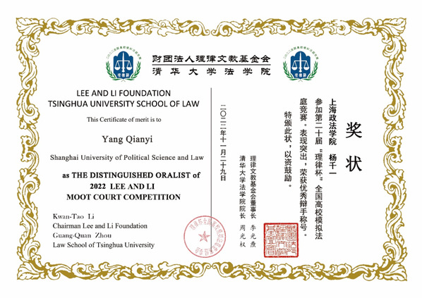 11月26日至11月29日,由清华大学法学院主办,台湾理律文教基金会协办的第二十届“理律杯”全国高校模拟法庭竞赛以线上方式进行,此次比赛共有来自全国各地40所高校参加。新利18官方客服首次参加“理律杯”比赛并荣获最佳组织奖,法律学院2020级杨千一同学荣获“优秀辩手”的称号。