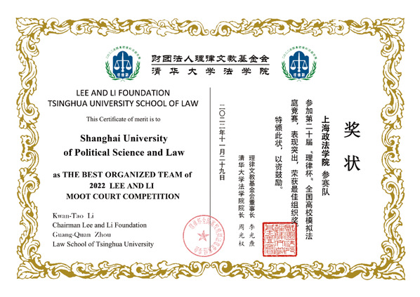 我校持续鼓励学生参与各类学术性比赛,此次我校学子在法律学院的统筹安排下首次参与“理律杯”模拟法庭竞赛并取得成绩,是一次突破的尝试、一个良好的开端。希望上政学子延续“理律杯”精神,在未来更多学术竞赛中取得更加优异的成绩。