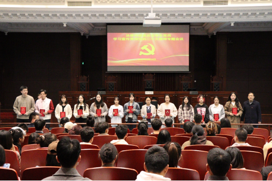 会上,学院党总支还集中表彰了2022年度学习强国“学习标兵”、学习强国“优秀组织者”以及“法治新征程,献礼二十大——讲述法治故事,数说法治成就”、“喜迎党的二十大,青春奋进新征程”等系列活动获奖同学。(叶欣怡、徐雨涵、庄文佳、孙瑜阳、殷佳琪撰稿 李涵超、宋思霓摄影)