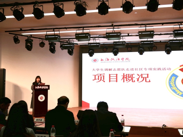 学生代表韩露表示通过“大学生调解志愿者队走进社区专项实践活动”,将自身的专业知识与调解技巧运用到现实的社会生活中,立志将上政学子的个人力量汇聚到法治中国建设中。