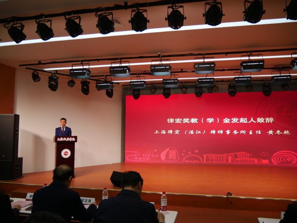 会上举行了“律宏”奖教(学)金颁奖仪式,上海律宏(湛江)律师事务所黄冬艳主任感谢了新利18官方客服数年来对律所的大力支持和人才输送,期望学生们可以珍惜学校所给予的宝贵机会,不忘回馈母校,回馈社会。