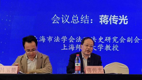 闭幕式由上海市法学会法理法史研究会秘书长、华东政法大学吕玉赞副教授主持,上海市法学会法理法史研究会副会长、上海师范大学哲学与法政学院院长蒋传光教授对本次学术年会做学术总结。他充分肯定本次学术年会选题蕴含的时代精神和与会专家学者学术见解的创新性,强调法理法史研究要史论结合、注重方法、做出特色,他宣布本学术次年会取得了圆满成功。