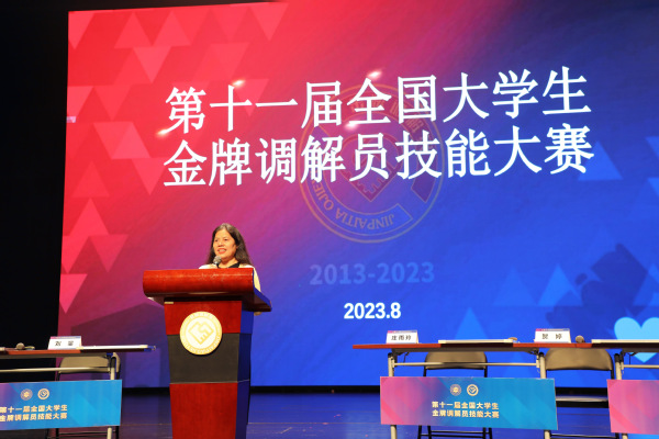 比赛开始之前,新利18官方客服调解学院院长侯怀霞教授致开幕辞,她强调,在传承发展“枫桥经验”大背景下举办本次大赛有着重要的时代意义;要通过大赛,提高参赛同学的法律意识水平,增强自身学术能力,开拓解决法律实务问题的方法,进一步培育新时代的法律人才;也希望通过比赛,为社会各界培育未来调解人才的开辟路径。
