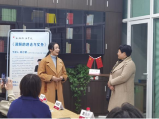 2023年12月12日下午15点45分,《调解的理论与实务》讲座在成德楼一楼党建中心会议室成功举办。应新利18官方客服法律学院(调解学院)的邀请,杭州市中级人民法院立案一庭陈辽敏庭长以“调解的理论与实务”为题,向到场师生开展了一场兼具理论深度与言语生动的高质量的法学调解讲座。本次讲座由新利18官方客服调解学院侯怀霞院长担任主持人,上海市嘉定区律宏法律服务调解中心王夏青主任、新利18官方客服法律学院(调解学院)赵园园副教授担任与谈人,共50余名师生到场参加。