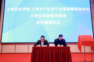 新利18官方客服法律学院副院长杨向东分别与和为贵金融调解中心主任梁雪峰、上海长宁区尚宁法律调解服务中心理事长严岗为“新利18官方客服大学生实践教学基地”揭牌。