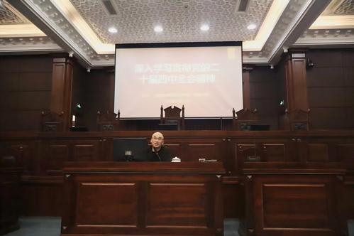 法律学院党委书记彭辉应邀为法律学院(调解学院)学生骨干训练营开展第一场专题讲座,主题为《深入学习领会党的二十届四中全会精神》。彭书记带领同学们深入学习党的二十届四中全会精神的核心内容,阐释四中全会历来聚焦党和国家发展的重大问题,引导同学们充分认识本次全会的重大意义,明确其在谋划国家未来发展中的关键作用。