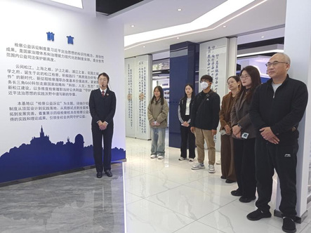 11月14日上午,我校上政第1、3和19学生党支部联合组织前往松江区人民检察院佘山公益诉讼宣传教育基地参观走访。法律学院党委书记彭辉、辅导员张露、陈雪婷带领学生党员、积极分子代表等近二十名师生参加活动,松江区检察院杨丹检察官接待师生一行并现场讲解。