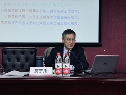 同时,在对公共应急理念和应急法治原则进行检讨,以及对总书记和党中央关于应急法治论述的深入阐释基础上,莫于川教授重点就《突发事件应对法》大修工程的创新亮点进行了解读。修订后的《突发事件应对法》文本体量大增,增加了诸多新理念、新制度、新机制和新方法,可以概括为以下五个创新点:一是通过立法目的条款和党的领导入法等修改,调整完善了基本制度体系;二是形成了总体安全、人民至上、科学应对、预防为主的应急法治原则体系;三是设计了一系列保护特殊群体合法权益的法律规范;四是厘清了多种情形下地方政府及其部门、有关单位或个人等主体的法律责任。五是新增依法加强心理健康救援条款。最后,莫于川教授就应急法治发展的经验教训,健全应急法治的规范体系、能力体系及知识体系等内容进行了讲授。