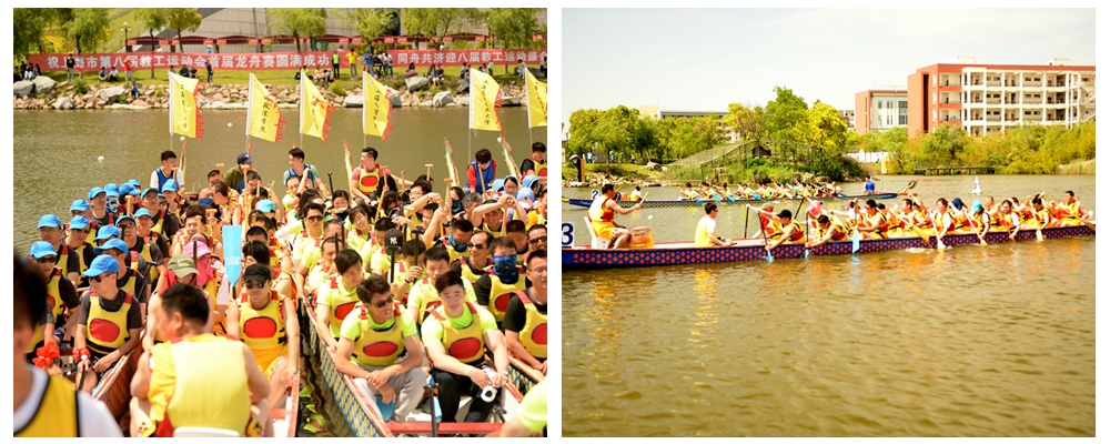 5月13日下午,上海市第八届教工运动会龙舟赛在华东理工大学(奉贤校区)通海湖举行。