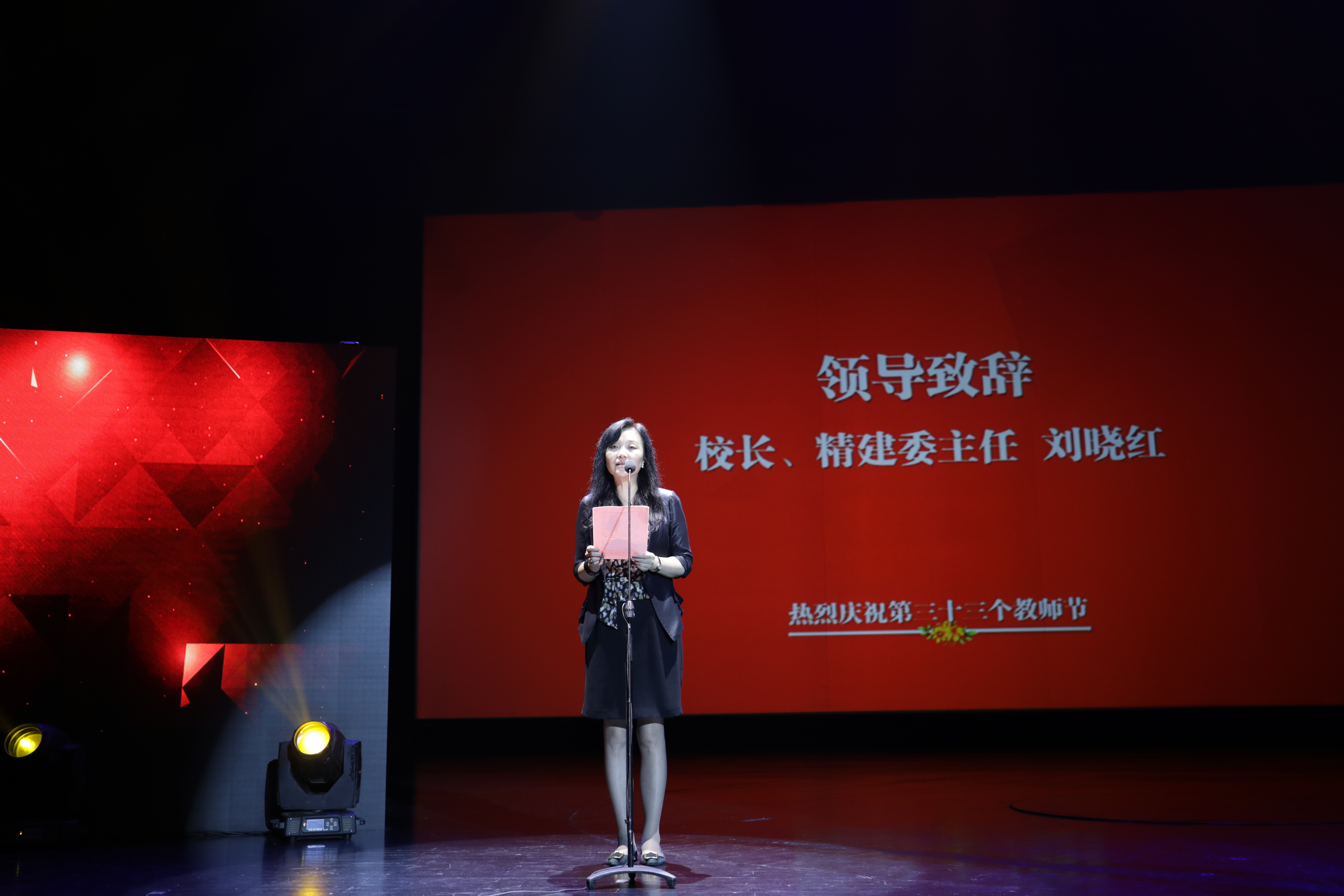 校长、精建委主任刘晓红致辞。她指出,作为一名光荣的人民教师,用真情传播智慧的火种,用勤劳和汗水培育优秀人才,我们无怨无悔。33年前,上政人在野马浜这片田野上白手起家,竖起第一幢教学大楼、第一幢学生宿舍、第一幢图书馆,在庆祝第一届教师节的同时迎来了第一批学员。33年来,我们秉持“立足政法、服务上海、面向全国”的办学定位,坚持特色发展、卓越发展和创新发展,推进学校实现了一个又一个新的突破。这一系列成果的取得来之不易,凝聚着全校教职员工和广大师生同心协力、砥砺前行三十余载的劳动和心血。