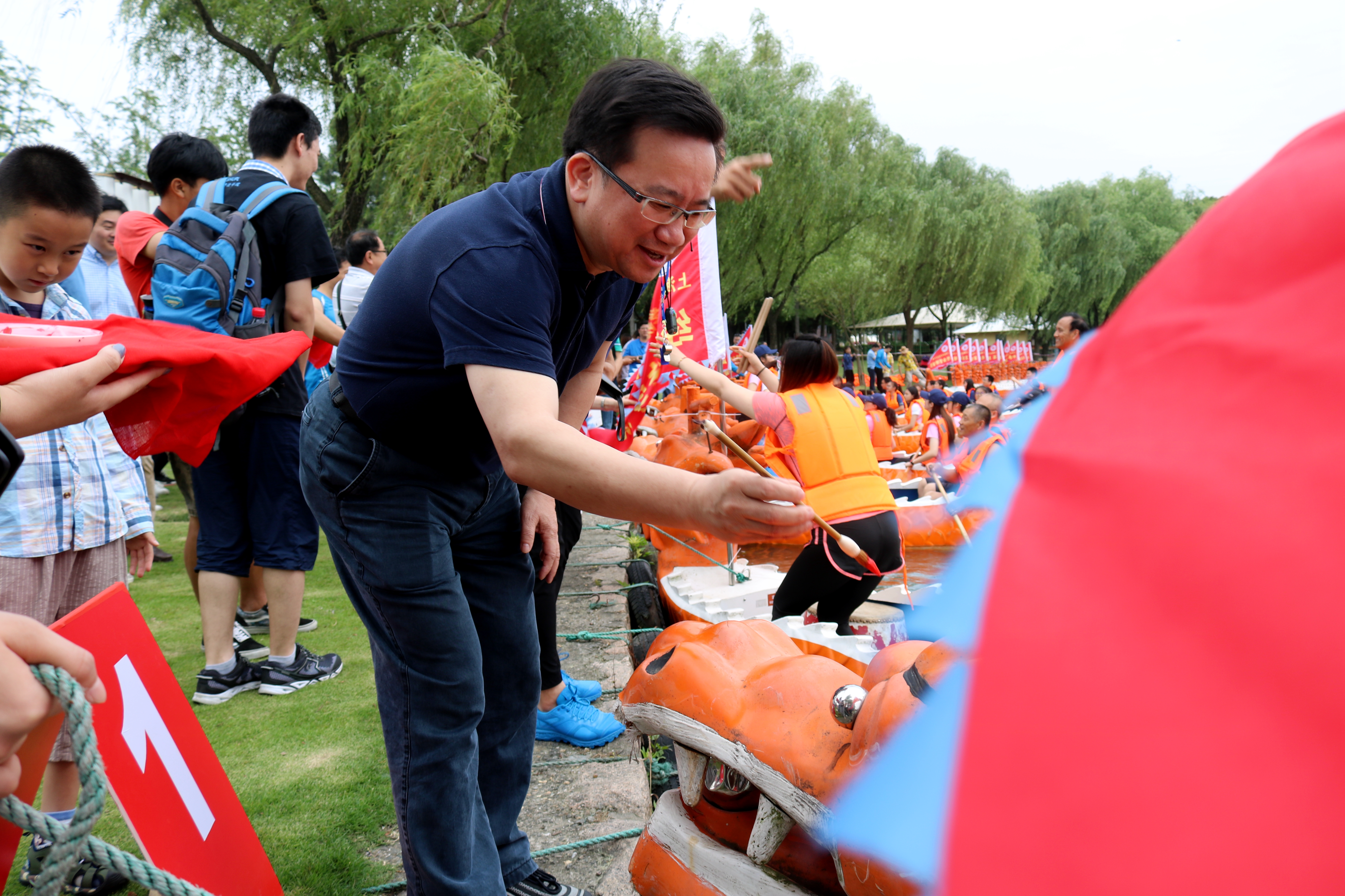 在开幕式后,领导和嘉宾共同为龙舟“点睛”。