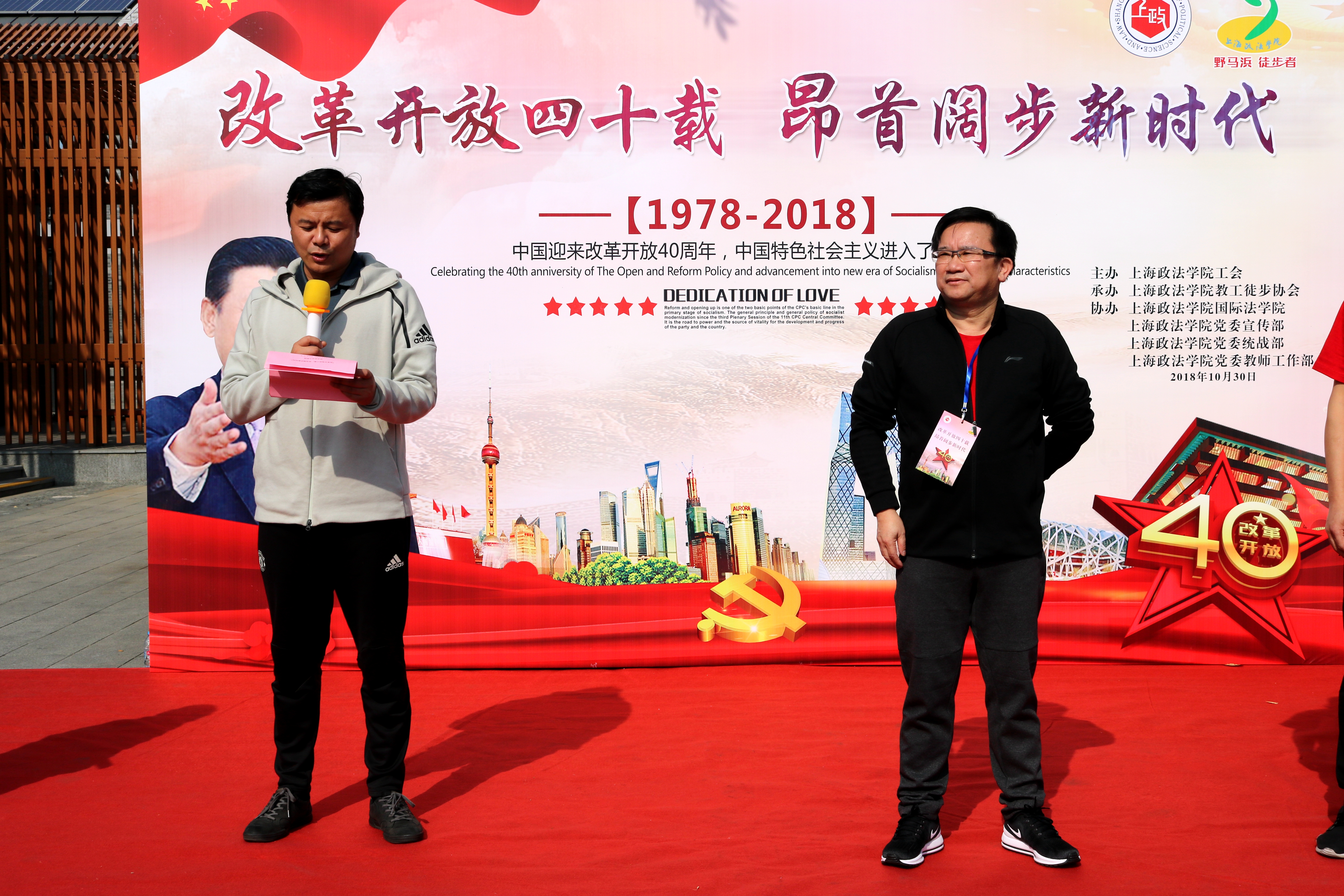 开幕式由校党委副书记、副校长、工会主席刘刚主持,他希望学校教职工以参与活动为契机,走进大自然,沐浴阳光下,投身全民健身行列,舒缓压力、强身健体,在徒步中领略运动的魅力与激情,感受祖国新时代的气息,向着改革开放的新目标砥砺前行,共建上政更加美好的明天!刘刚代表学校向为筹办此次活动付出辛劳的各部门老师表示衷心的感谢!