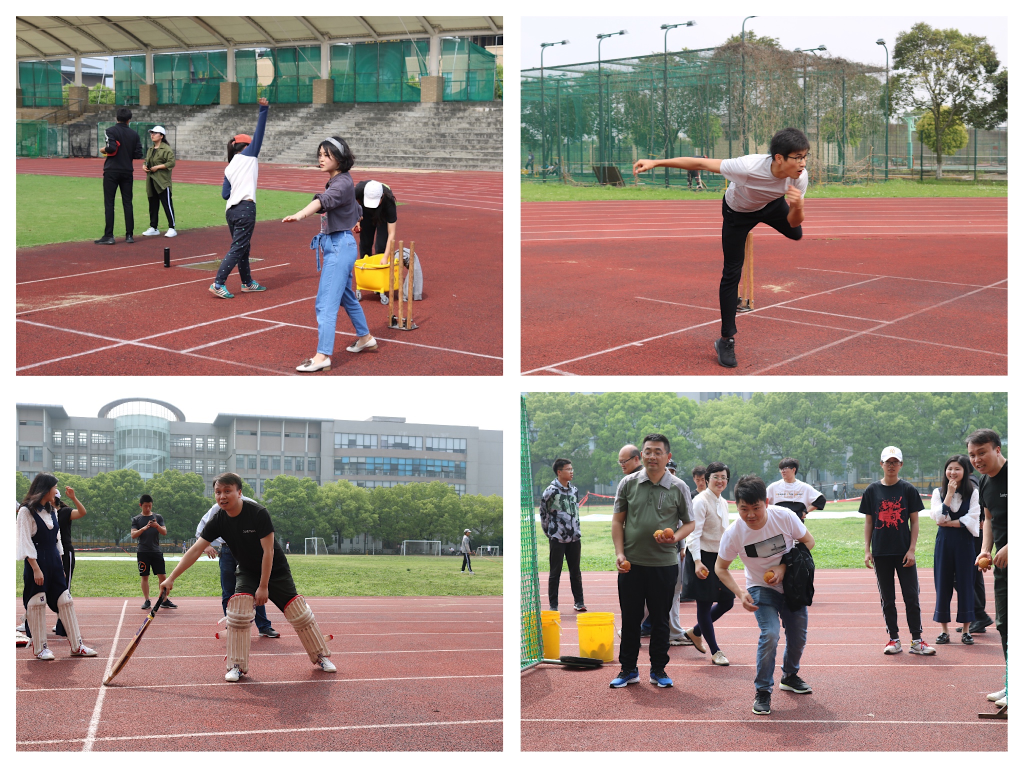 4月23日,晴空万里,阳光灿烂,校工会与校板球队于学校田径场联合举办了教职工板球趣味赛。我校教职工积极响应,来自各二级分工会的30余名教职工参与了本次比赛。