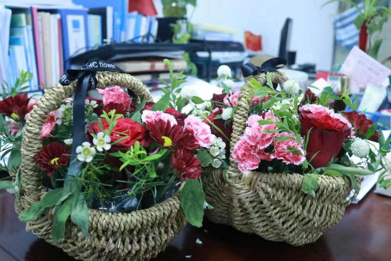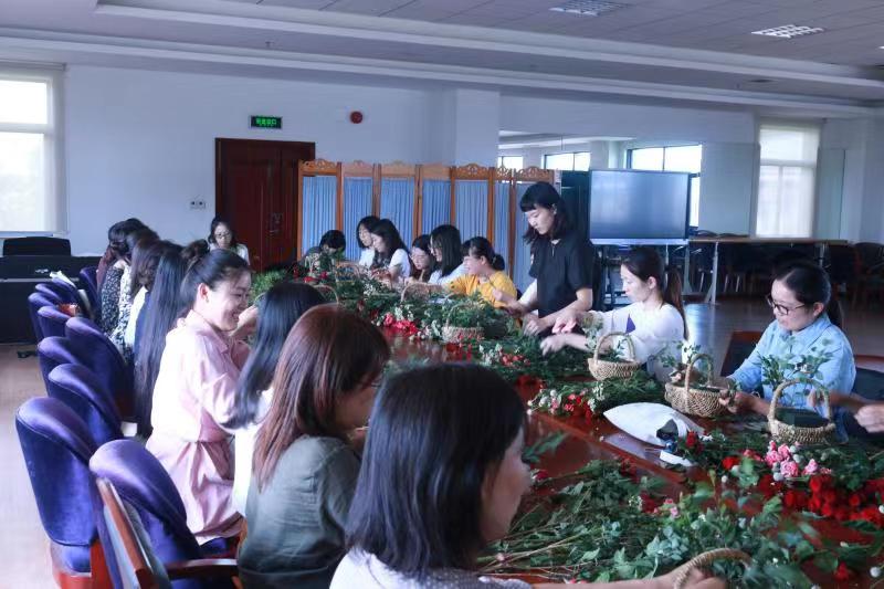 在花艺老师的细心讲解下,教职工们发挥灵感,将一朵朵鲜花摆出精美的造型,组合成一幅幅美丽的图画。此次活动选择的6种花材,颜色艳丽,以红色为主色调,表达了教职工对祖国母亲的无限热忱,也象征着我们的生活红红火火、蒸蒸日上。