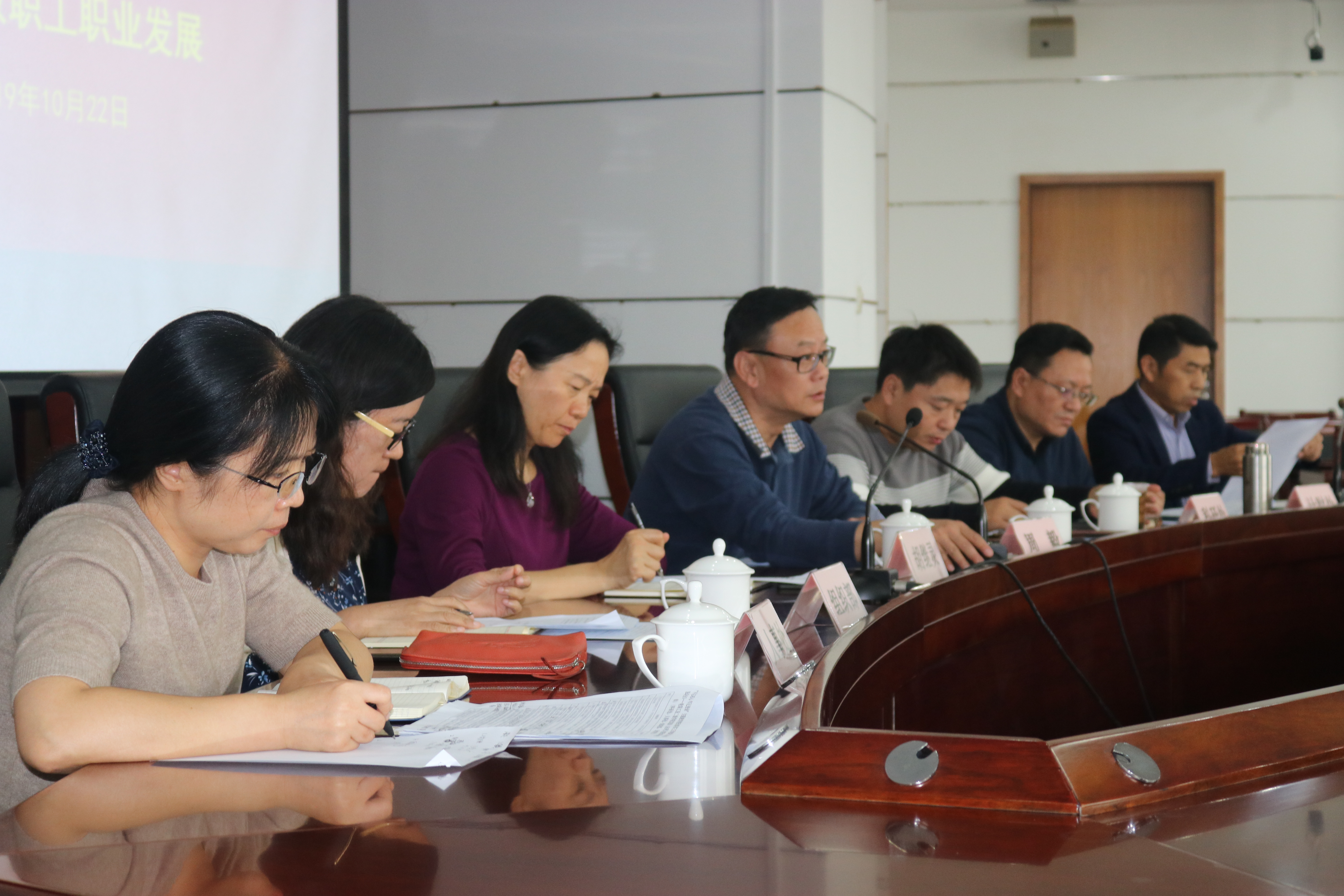 当前学校正在开展“不忘初心 牢记使命”主题教育,为了在“改”上体现温度,让教职工充分参与到整改中来,10月22日下午,以“教职工职业发展”为主题的第一场“不忘初心、牢记使命”主题教育——教职工面对面恳谈会在求实楼513会议室召开。副校长胡继灵、人事处处长韩同兰、计财处副处长叶玮、组织部副部长张东霞、校办副主任荣道福、提案委员会委员及教职工代表出席了本次会议,会议由工会常务副主席周毅主持。