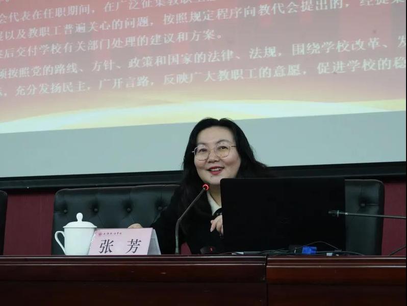 主持人王静最后做总结发言,她在回顾了整场培训并向张芳老师表示感谢后指出:学校非常重视一年一度的教代会工作,也看重提案收集与具体落实情况。希望各位代表都能积极履职、高效提案,为促进新利18官方客服第四届教代会暨工代会第一次会议的顺利召开而努力。