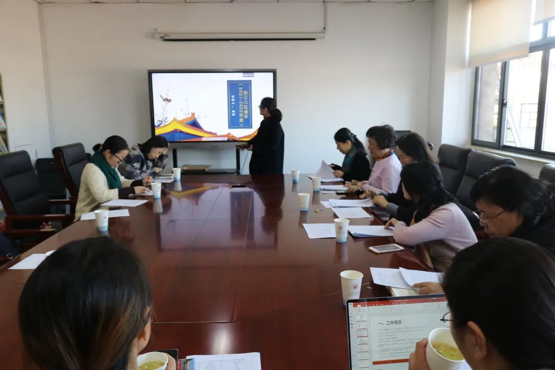 评选会议上,各个学院和机关的三八红旗手候选人(集体)以演示文稿的方式介绍了自己在工作岗位上为教育事业奋斗的事迹。