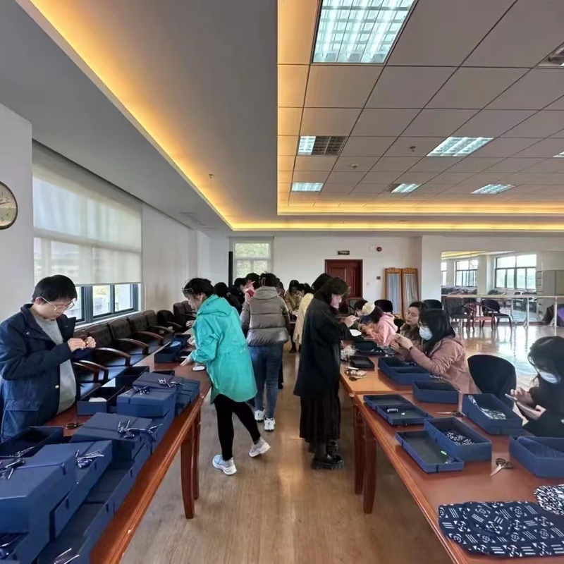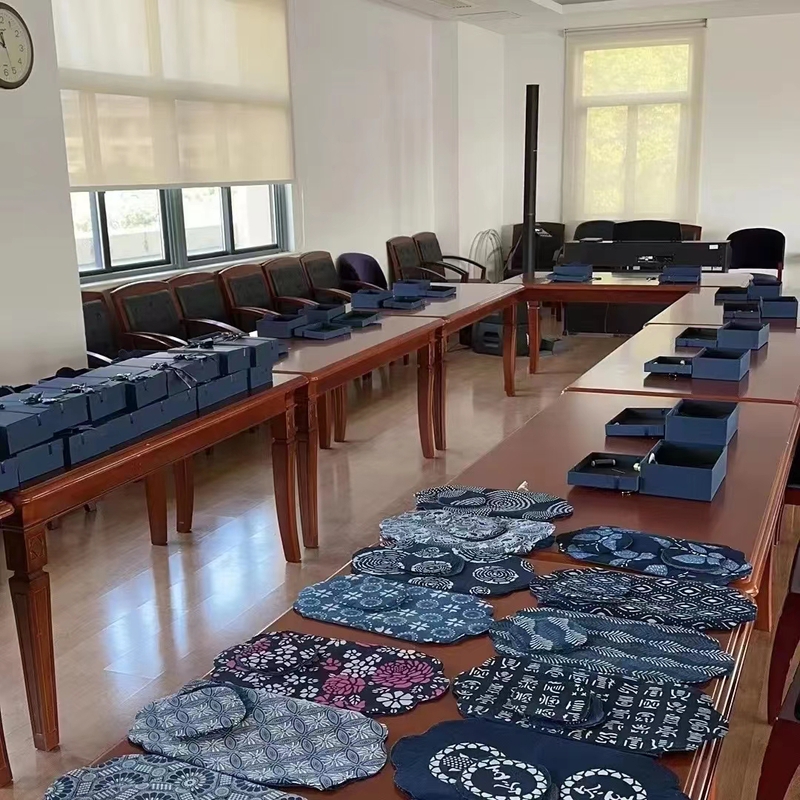 只见纤细的银线在布料中灵活穿梭,柔软的布料在手中上下翻飞,教职工们都全神贯注地投入于杯垫制作中。最终,一个个精心制作的手工杯垫新鲜出炉,别出心裁的造型设计,简约不简单、时尚又大方的花纹,从本真出发,又别具巧思,每个杯垫都各有千秋。