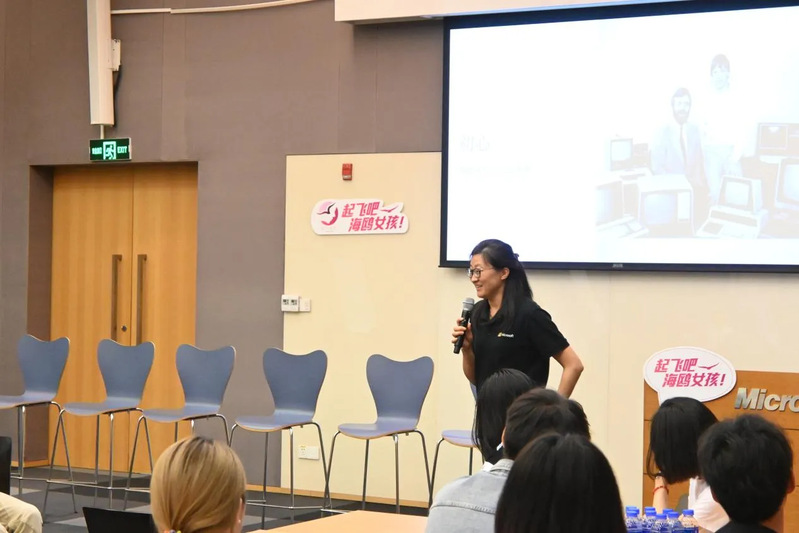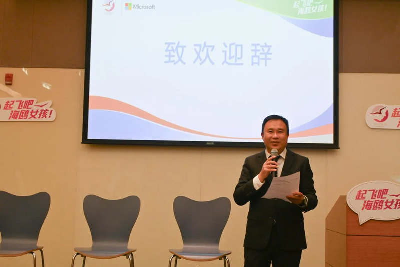 微软(中国)有限公司政府事务总监杨宁致欢迎辞,上海市女企业家协会副会长、海鸥计划策划人蔡婷,介绍“海鸥计划”开展近况,微软亚太研发集团高级人力资源经理蔡春梅向师生们介绍了微软的基本情况。