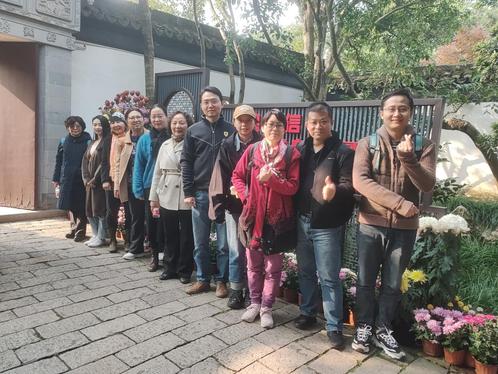 曲水园是上海的五大古典园林之一,小巧玲珑,坐落在青浦古县城护城河旁,园内假山、石桥、亭阁、池塘俱全,古木茂密、花草葱郁,深秋时节更是推出了寒兰展和菊花展览,老师们纷纷停留赏景,拍照留影。