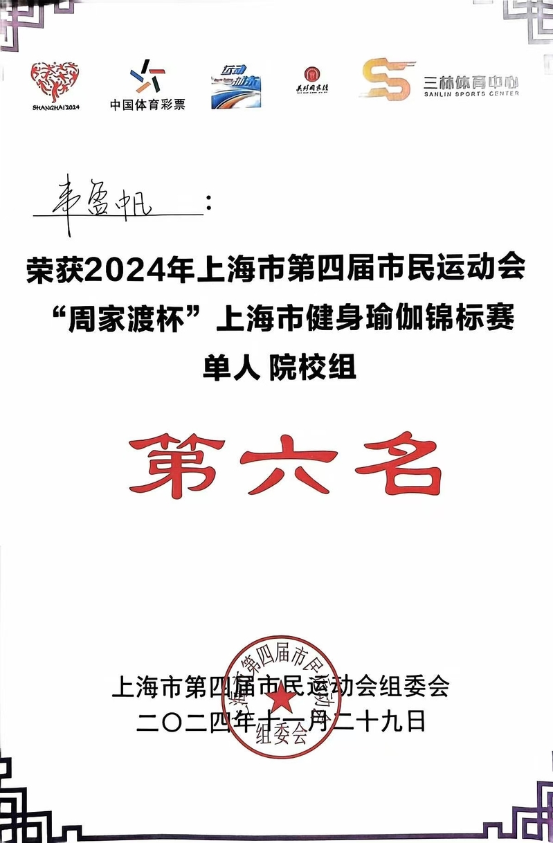 我校在上海市第四届市民运动会“周家渡杯”健身瑜伽锦标赛中