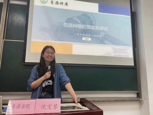 2023年5月8日下午6时,“青雁讲席”暨《司法实务》第九期课程在信教108开讲,很荣幸邀请到青浦法院一级法官、执裁庭副庭长——沈宝琴法官担任本次课程的主讲老师。