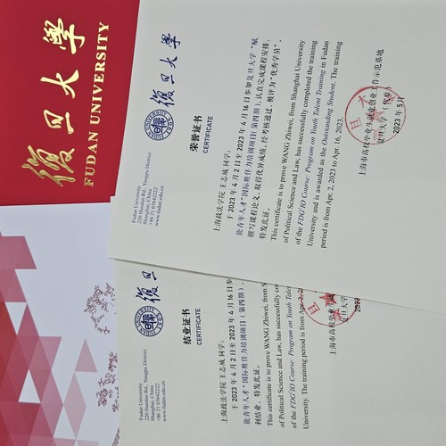 “赋能青年人才”国际胜任力培训项目(第四期)“优秀学员”证书和结业证书/王志威摄
