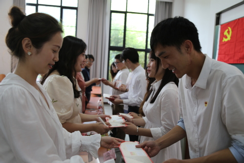 学院领导、学生党支部书记带领毕业生党员和新党员庄严地面向党旗响亮地向党组织宣誓,并赠予毕业生党员学校精心制作的“初心印迹卡”,向他们表示祝福祝贺的同时,叮嘱他们时刻不忘初心、时刻不忘来时路、时刻不忘党员使命,要立足新岗位,谱写建设“法治中国”的新篇章。