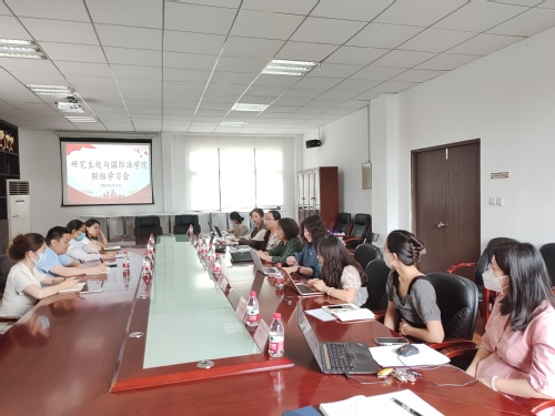 依照学校学习贯彻习近平新时代中国特色社会主义思想主题教育的部署安排,为了推进问题联动整改,国际法学院与研究生处于6月13日在B1-217会议室开展“四联”活动。国际法学院党总支书记王守芬,研究生处处长卫磊,国际法学院领导班子成员、党支部书记和研究生处相关人员参加活动。活动由国际法学院党总支书记王守芬主持。