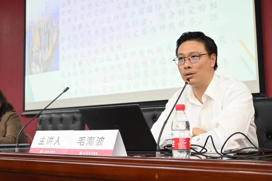 2023年10月8日,国际法学院“佘山国际法讲坛“系列讲座第一期在汇知楼开讲。首场讲座由上海市浦东新区人民法院副院长毛海波法官主讲。毛海波以《涉外商事审判实务探讨与展望》为题,全面介绍了近年来我国涉外商事审判工作的发展,回顾总结了上海法院在贯彻落实统筹推进国内法治和涉外法治的习近平法治思想过程中,推动涉外商事审判专业化和国际化所采取的举措。毛海波分别从涉外仲裁司法审查、外国法查明、跨境破产及判决承认与执行等多维度解读我国涉外商事审判的新发展趋向,以案例为牵引,以法条为准据,深入浅出地阐述了涉外商事审判的理念与思维。他激励同学们加强理论学习,关注实践发展,不断提升专业水平和国际视野。
