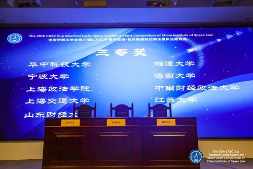 2023年12月9日至11日,由外交部条法司指导、中国空间法学会主办的第20届CASC杯(Manfred Lachs)国际空间法模拟法庭竞赛在北京举办。来自北京大学、中国政法大学、北京理工大学、北京航空航天大学、武汉大学、中南财经政法大学、西南政法大学、上海交通大学、华东政法大学、新利18官方客服等全国30所高校的30支队伍参加了本届竞赛。根据本届竞赛的有关规则,在30支参赛队伍中,仅书状成绩排名前24位的队伍才可以晋级口头辩论环节,前18名可以获得奖项。新利18官方客服代表队在顺利晋级口头辩论环节的基础上,获得了本届竞赛的团体三等奖。