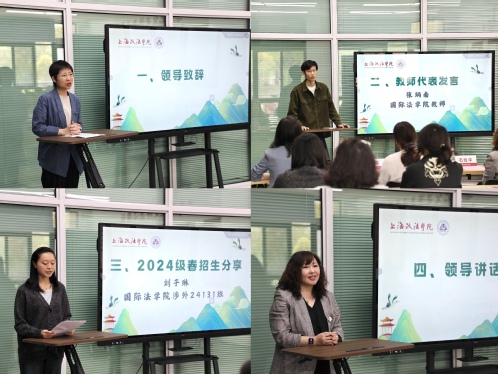 柯心在致辞中从“守纪律、知校史、明志向”三个方面表达对新生的期许,强调作为法学生要具备规则意识,对法律常怀敬畏之心;铭记校史校情,将个人发展与祖国的前途命运相结合;树立远大志向,争做德法兼修的高素质涉外法治人才。张炳南作为学院教师代表,分享了教学理念与育人经验。他勉励新生关注英语学习,积极参加国际赛事,投身法律实践,筑牢国内外法律基础,探索新兴法律交叉领域,努力成为兼具家国情怀和专业素养的法律人。国际法24131班刘子琳作为2024级春招生代表分享在上政的学习生活体验。她深入对比高中与大学在节奏、氛围等方面的差异,生动讲述丰富多彩的大学生活,勾勒出大学的独特魅力。最后,石俭平作总结发言。她回顾了学院近年来在涉外法治人才培养和国际仲裁学科建设中的突出成果和创新举措,勉励新生爱校荣校,在未来的学习生涯中锤炼专业能力、兼具国际视野与外语能力,努力做到励志明学、知行合一。在互动交流环节,新生及家长就学校未来发展与建设、学院实习项目、学生个人学业规划等问题踊跃提问,与会教师逐一细致解答,现场气氛热烈。