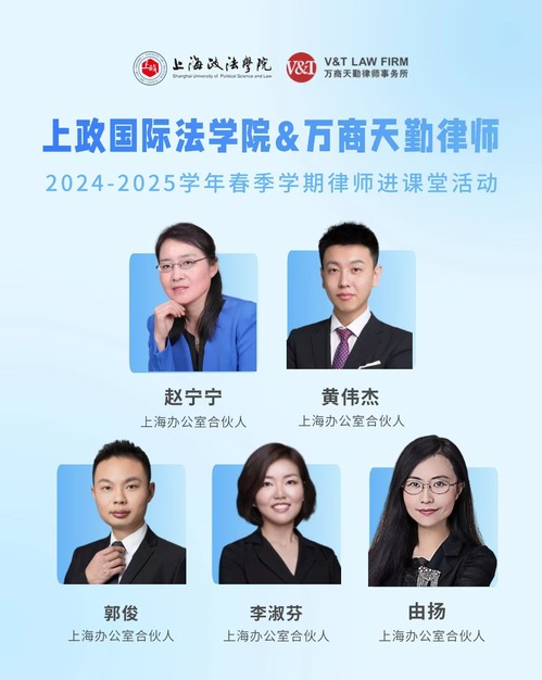 国际法学院副教授贾琳邀请万商天勤(上海)律师事务所具有丰富涉外法律实务经验的合伙人赵宁宁律师、黄伟杰律师、郭俊律师和李淑芬律师走进研究生《涉外诉讼律师实务》的课堂,分别围绕《涉外民事诉讼律师实务》、《一起国际大宗贸易纠纷案件跨法域处置实例》、《美国证据法和诉讼法》以及《跨境并购中的争议解决》等内容进行授课,开拓了同学的国际视野,受到学生的热烈欢迎。此外,由扬律师还受邀为研究生《法律谈判》开设了一次讲座,聚焦法律谈判实战秘籍和青年律师成长两大主题,帮助学生初步建立起法律服务思维体系与架构。