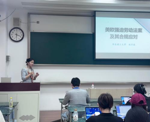 5月12日,由我校国际法学院主办的涉外法治实务讲坛第八讲成功举办,华东理工大学法学院副教授,农业农村部农业对外合作法律顾问专家组成员,上海市中小企业合规管理体系创建活动指导专家祝宁波副教授为我校师生做了“美欧强迫劳动法案及其合规应对“的精彩讲座。