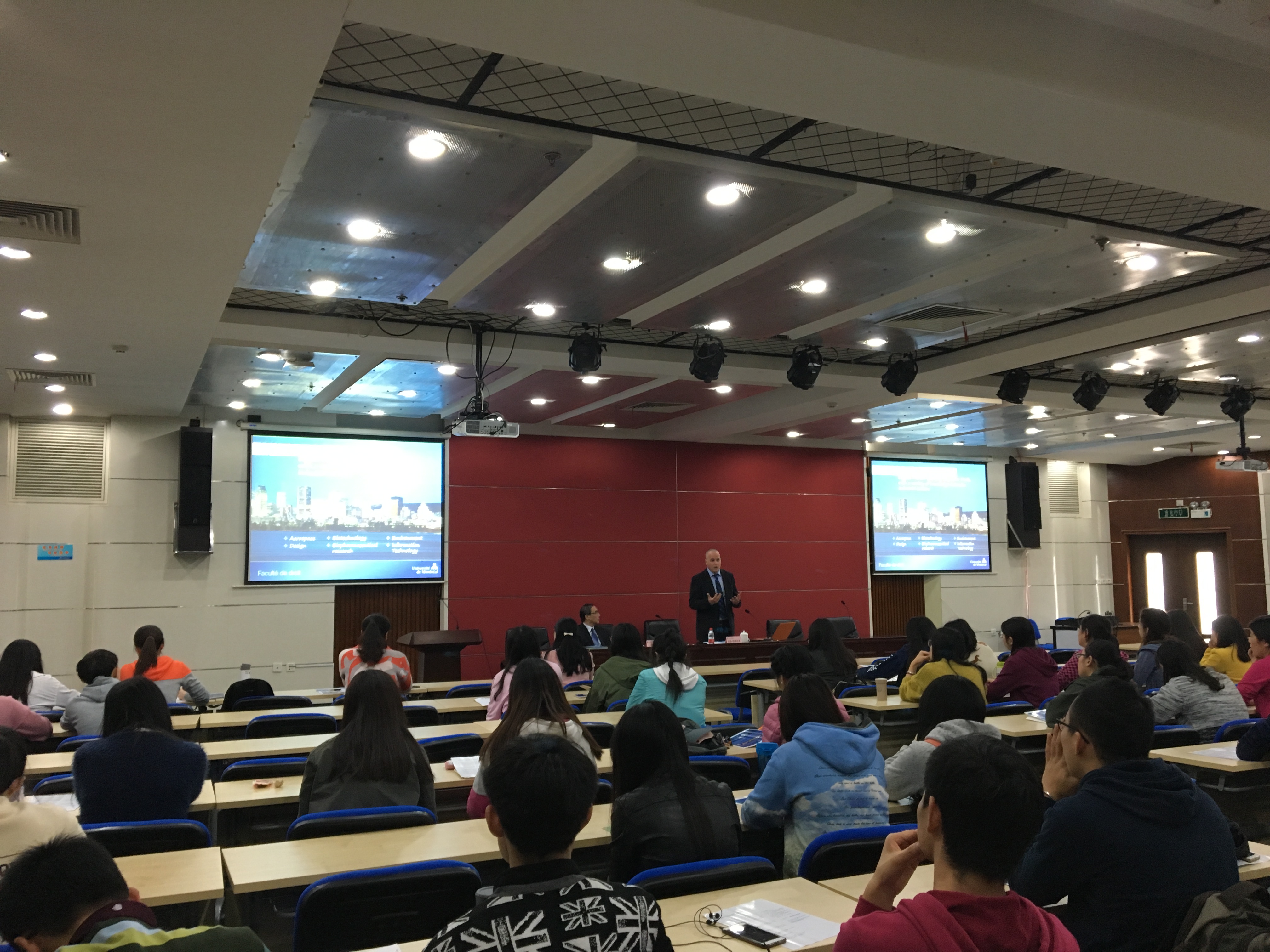 11月2日,加拿大蒙特利尔大学在我校庸夫楼101召开留学与访问宣讲会。本次会议的主讲人为加拿大蒙特利尔中国项目负责人Hugo Tremblay、Jie Jiao教授。首先,在会议开始时,Hugo Tremblay教授对蒙特利尔大学的历史、环境、师资力量做了简单的介绍,接着针对国际商法硕士项目做了详细的介绍,国际商法硕士项目主要目标是向法律专业的学生提供一个专业学习的机会,它将引领学生在国际商法领域进行学习,并拓展其研究分析能力。其次,项目负责人Jie Jiao教授对国际商法硕士项目的相关事宜进行了补充,包括项目申请方式和申请条件、奖学金申请方式和申请条件,以及该项目的发展前景等。最后,Hugo Tremblay教授和Jie Jiao教授耐心地回答了同学们的提问,使得更多的同学对蒙特利尔大学以及国际商法硕士项目有了深入的了解。(撰稿:朱天妮 摄影:张慈)