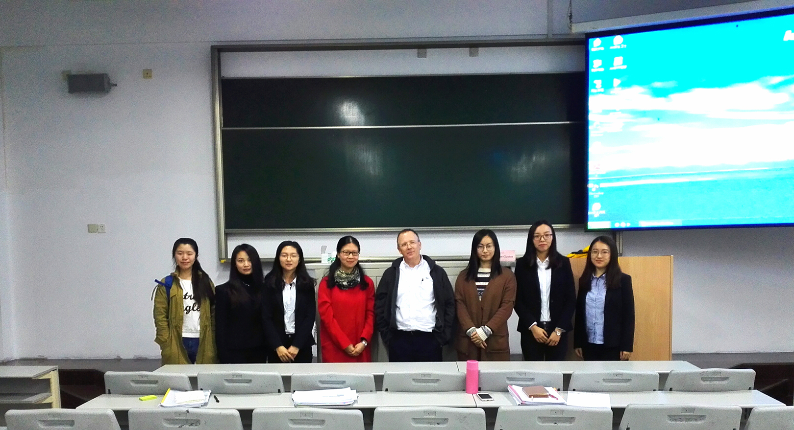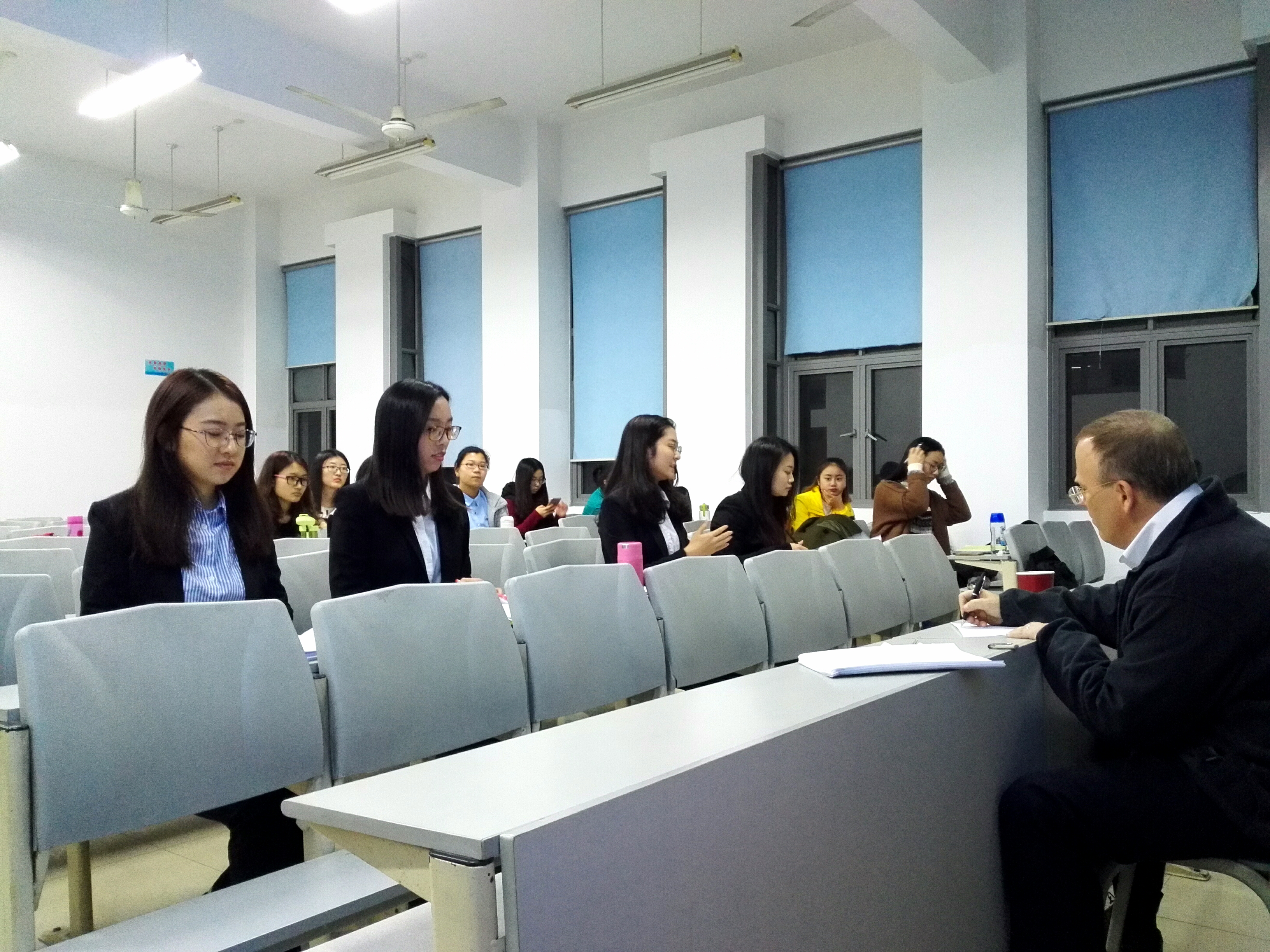 讲座结束后,Clayton教授与即将参加比赛的同学进行了一次Vis moot的比赛模拟,赛后教授就同学的表现进行点评,结合自身经验给出指导建议,并与参赛队员亲切合影留念。