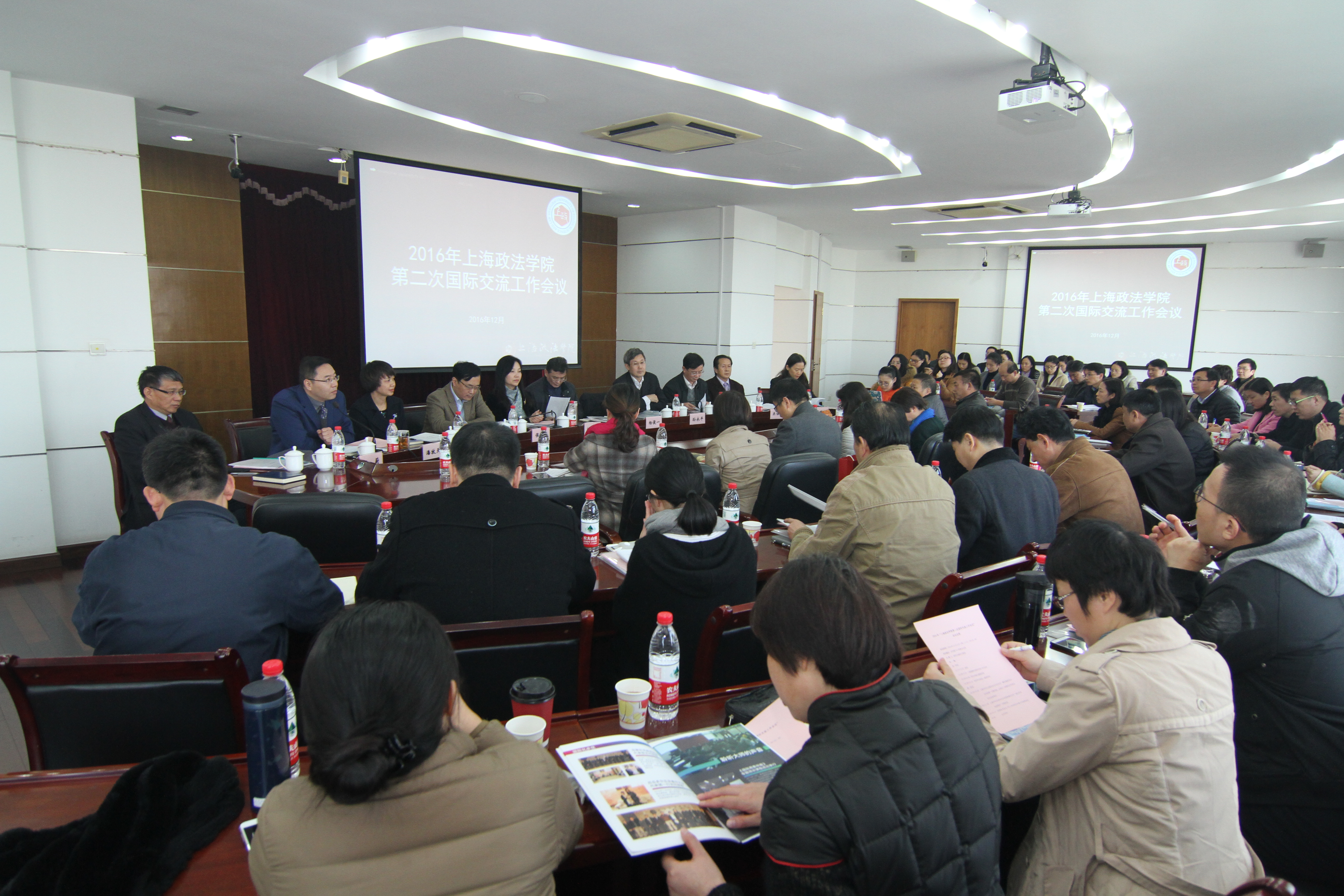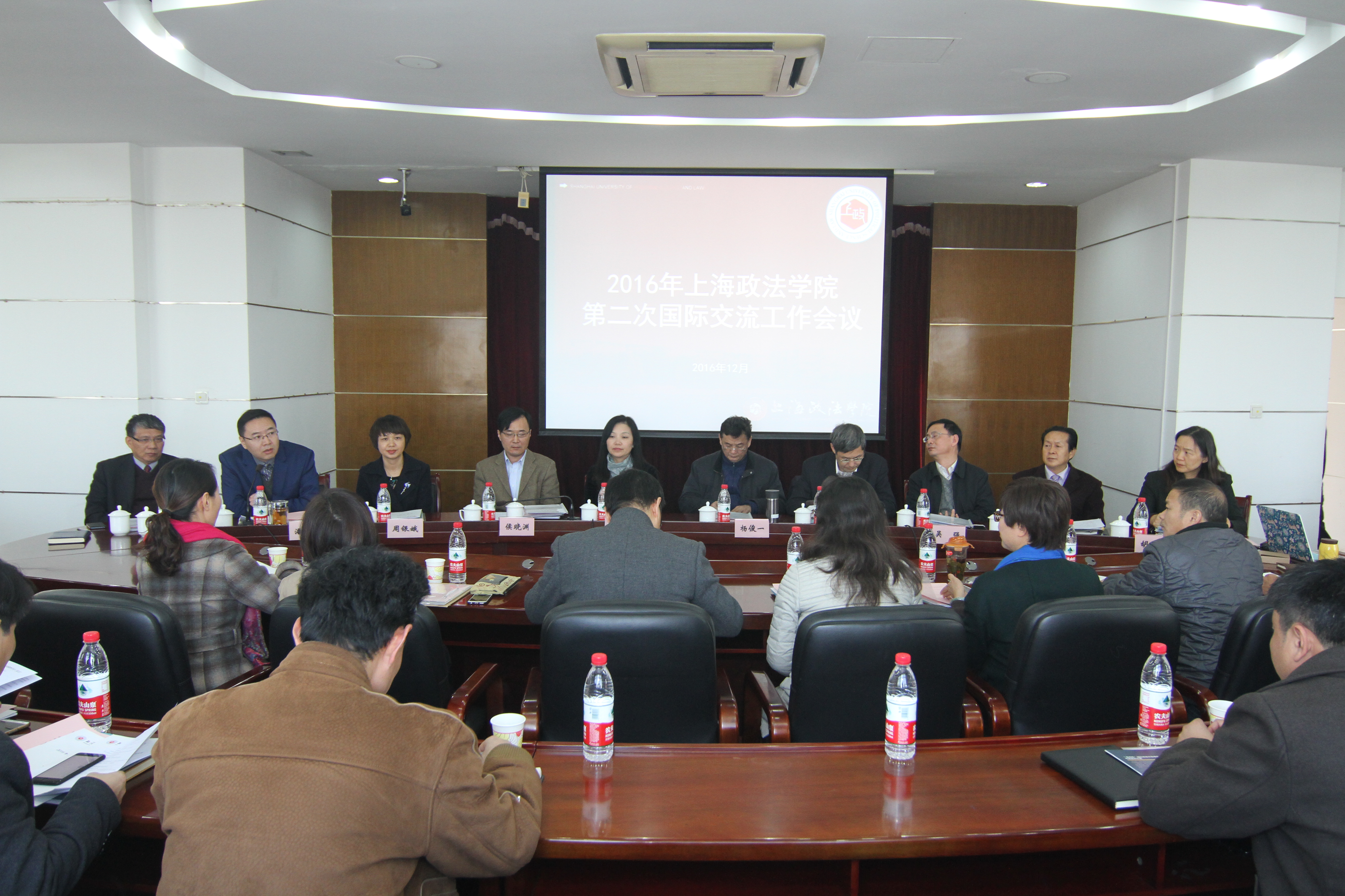 12月6日,上海政法学院“2016年第二次国际交流工作会议”在求实楼513视频会议室召开。上海市外办领导莅临指导。全体校领导、相关职能部门和二级学院负责人、外事联络员出席会议,会议由副校长潘牧天教授主持。