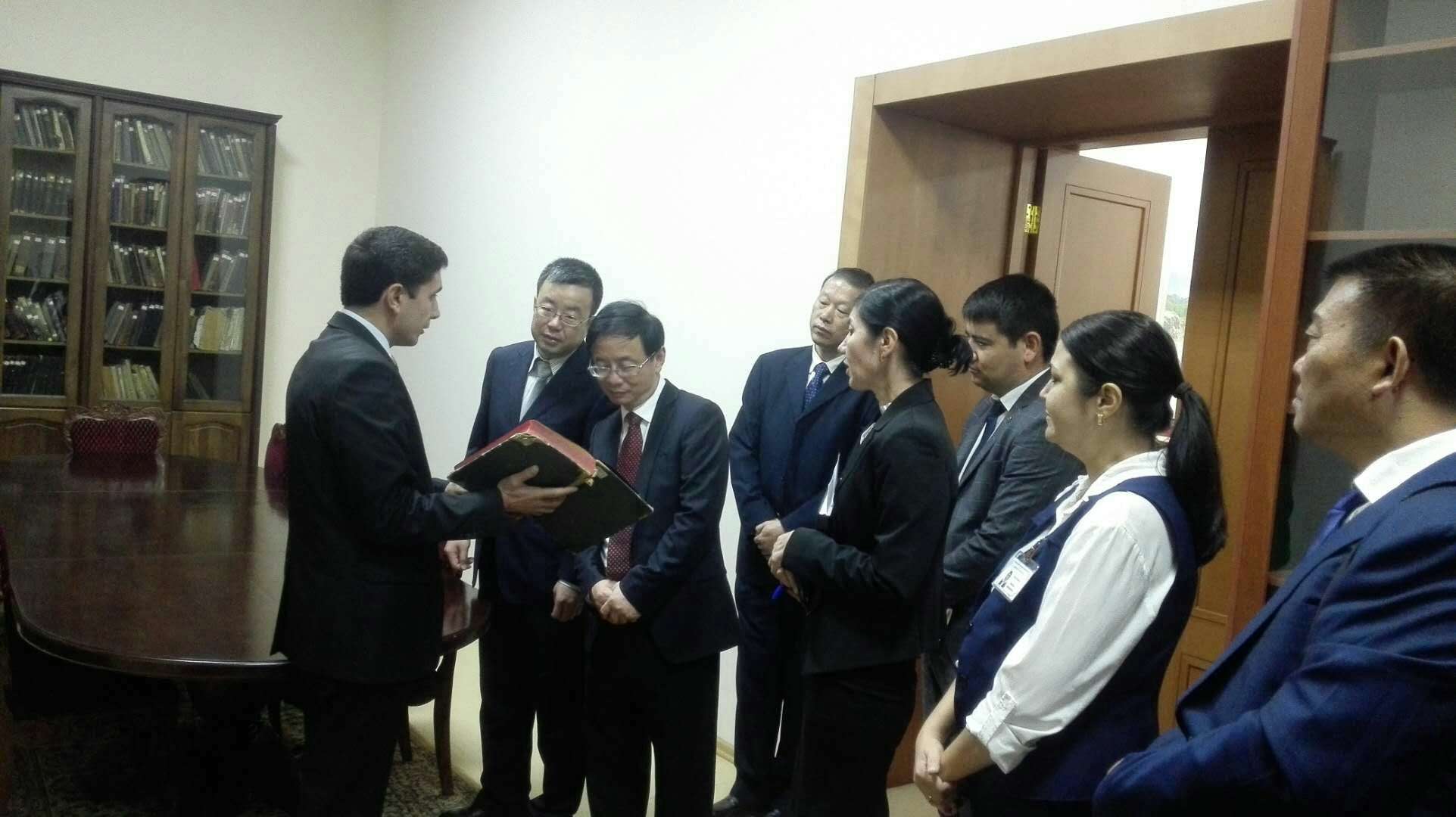 乌兹别克斯坦司法部副部长、塔什干国立法律大学校长卡亚佐夫·艾斯穆拉特会见了吴强一行并签署两校合作备忘录。两校计划加强教师、学生之间的学术交流,共享学术资源。塔什干国立法律大学副校长乌玛罗夫·基里绍德、扎米拉·诺姆拉托娃等陪同代表团参观了该校图书馆、模拟法庭、刑侦实验室、法律研究中心等。