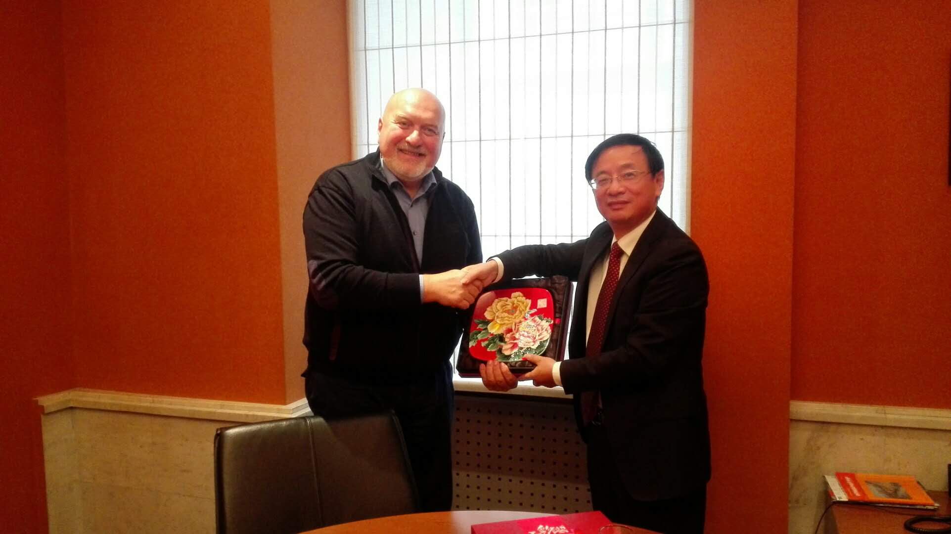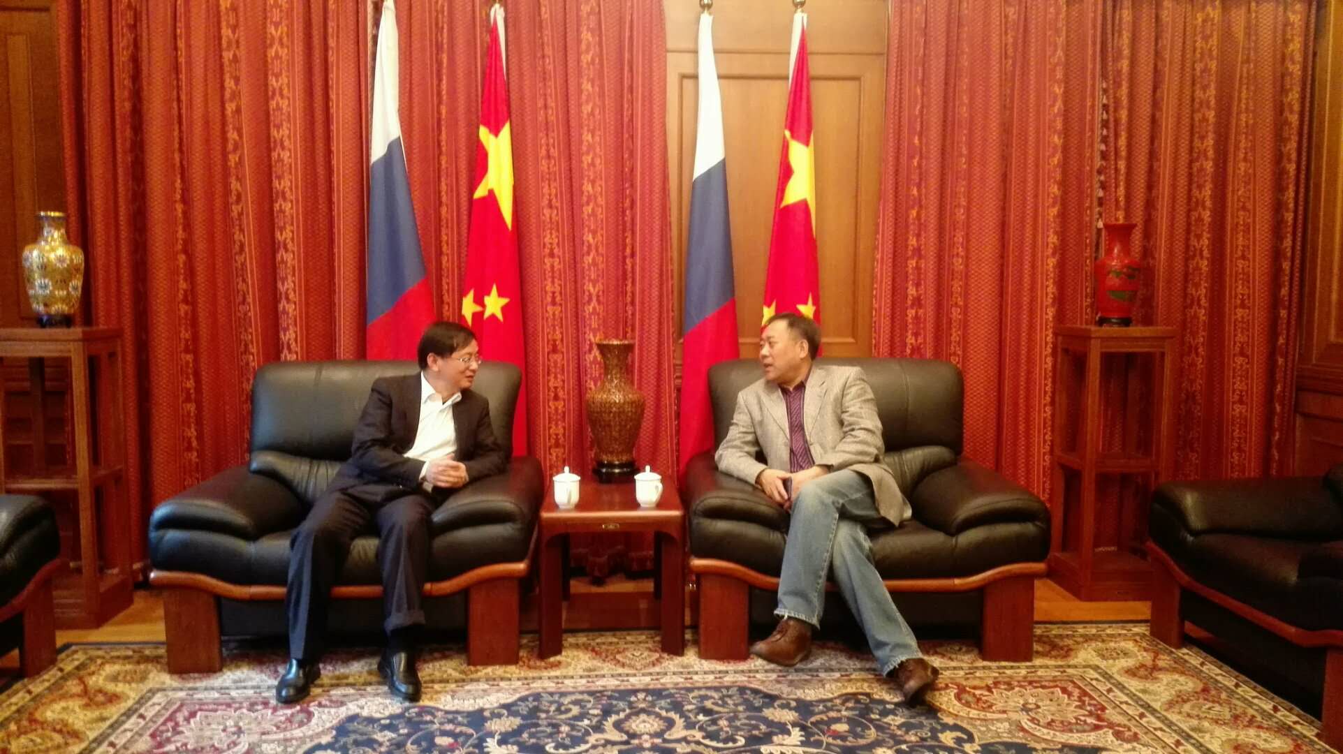 代表团向中华人民共和国驻俄罗斯联邦大使馆教育处公使衔参赞于继海汇报了我校与俄方的合作情况。于继海重点就留学生培养、汉语教学等给出了指导性意见。教育处二秘毕欢欢出席会见。