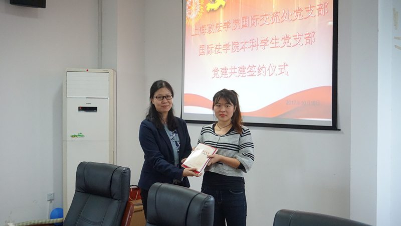 本次签约仪式还安排了双方第一次共建活动,国际交流处党支部对学生党支部进行了指导,姚珺珺老师介绍了学生海外学习、实习项目、涉外交往等相关情况,国际交流处学生大使团介绍了海外交流经历。张正怡代表国际交流处党支部向学生党员代表赠送了相关的学习书籍和资料。此次活动还得到了机关第四党总支的大力支持。