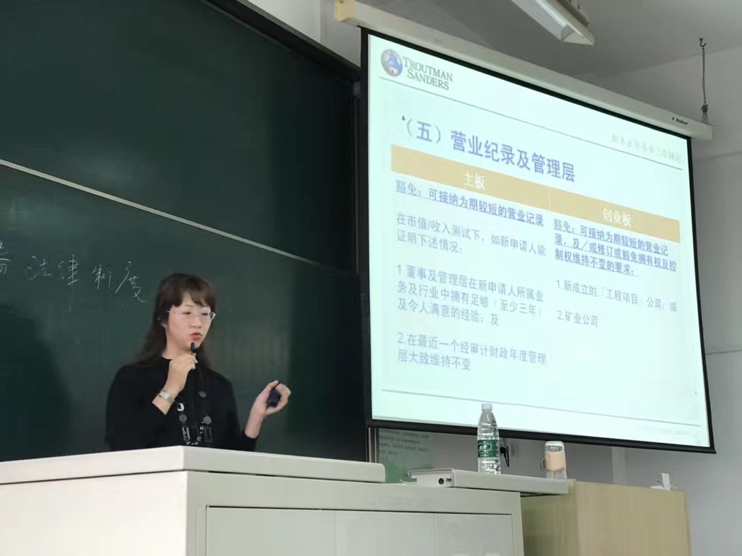 朱静文律师于10月23日以及10月25日分上下两部分做了主题为“香港证券法律制度”的讲座,讲座分别由国际法学院宋俊荣副教授、谢可训副教授主持。10月23日的讲座围绕香港股本证券基本上市规定展开。在10月25日的讲座里,朱静文律师向我校师生介绍了香港上市公司董事责任。讲座结束后,朱静文律师耐心解答了同学们的疑问。