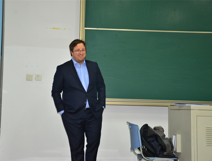 Tomas Hulle首先向同学们讲述了提高英语水平和掌握沟通技巧的重要性。他提出大学期间的学习不能只局限于课堂,还要将所学的知识充分运用到实践之中。在与其他领域的人才的交往过程中,虚心学习,汲取经验,明确个人未来职业规划与方向。随后,Tomas Hulle围绕我校组织的赴捷克布拉格学校见习项目进行详细介绍。针对在场同学们所关心的选拨机制、项目种类与安排等内容,进行了较为详尽的解答。