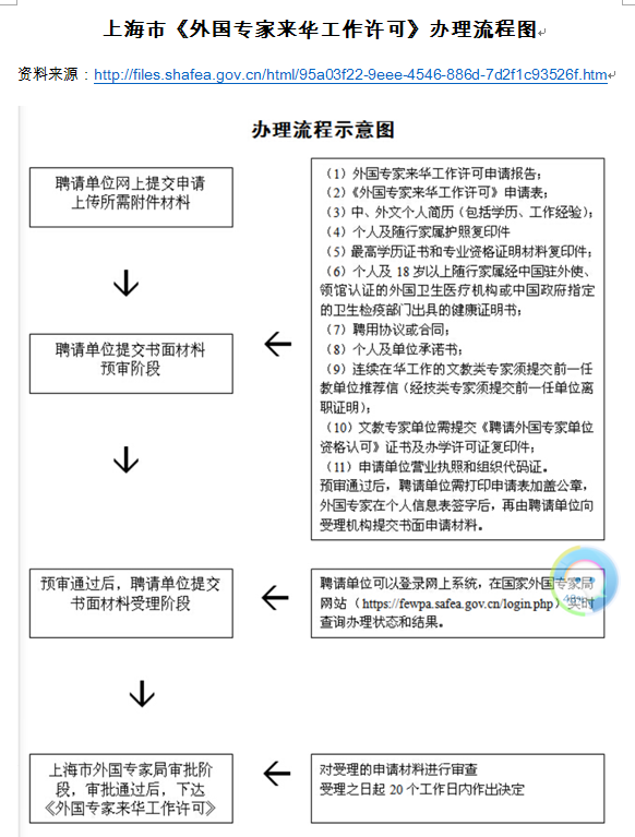 上海市外国专家来华工作许可办理流程图