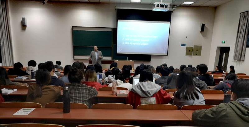 驻访期间,Mark Beer为我校师生作了以“Innovating Justice:Will LawTech deliver Jack Cade's Utopia”(创新正义:法律技术会实现杰克•凯德的乌托邦吗?)为主题的学术讲座。Mark Beer介绍了世界范围内法律技术的现状以及中国法律技术的迅速发展,同时也存在着法律技术不够先进的问题。他通过提出和总结有关人工智能和法律的问题为此次讲座作总结。