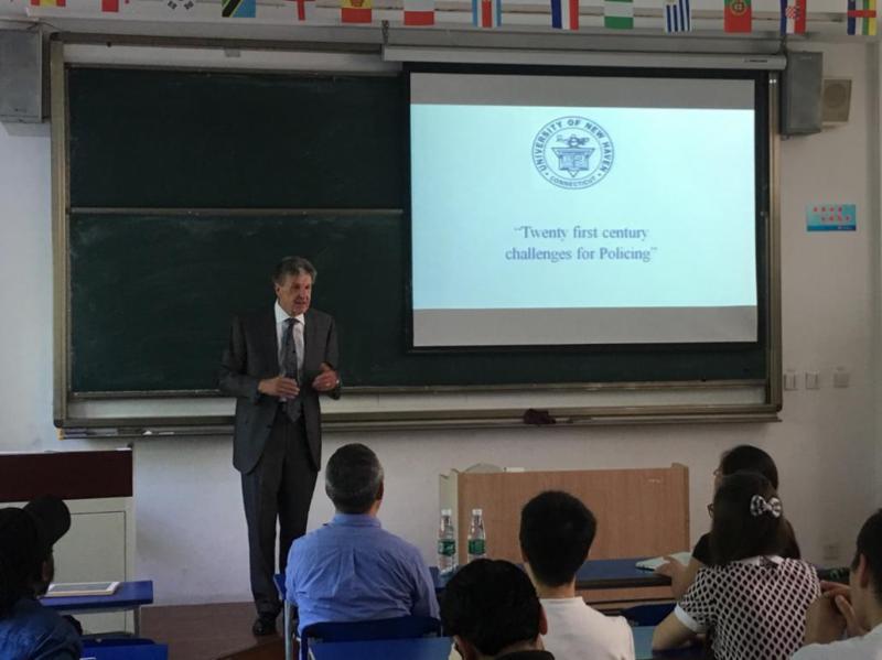 5月22日,美国纽黑文大学国际刑事司法与安全事务办公室主任David Webb教授在我校信教209室举办了主题为“21世纪警务技能的挑战”的讲座。该讲座为我校海外名师系列讲座之一。上海全球安全治理研究院常务副院长梅建明教授作为与谈人就讲座内容与主讲人展开对话交流,国际交流学院、刑事司法学院、法律学院、经济法学院、国际法学院等部分师生参与本次活动。