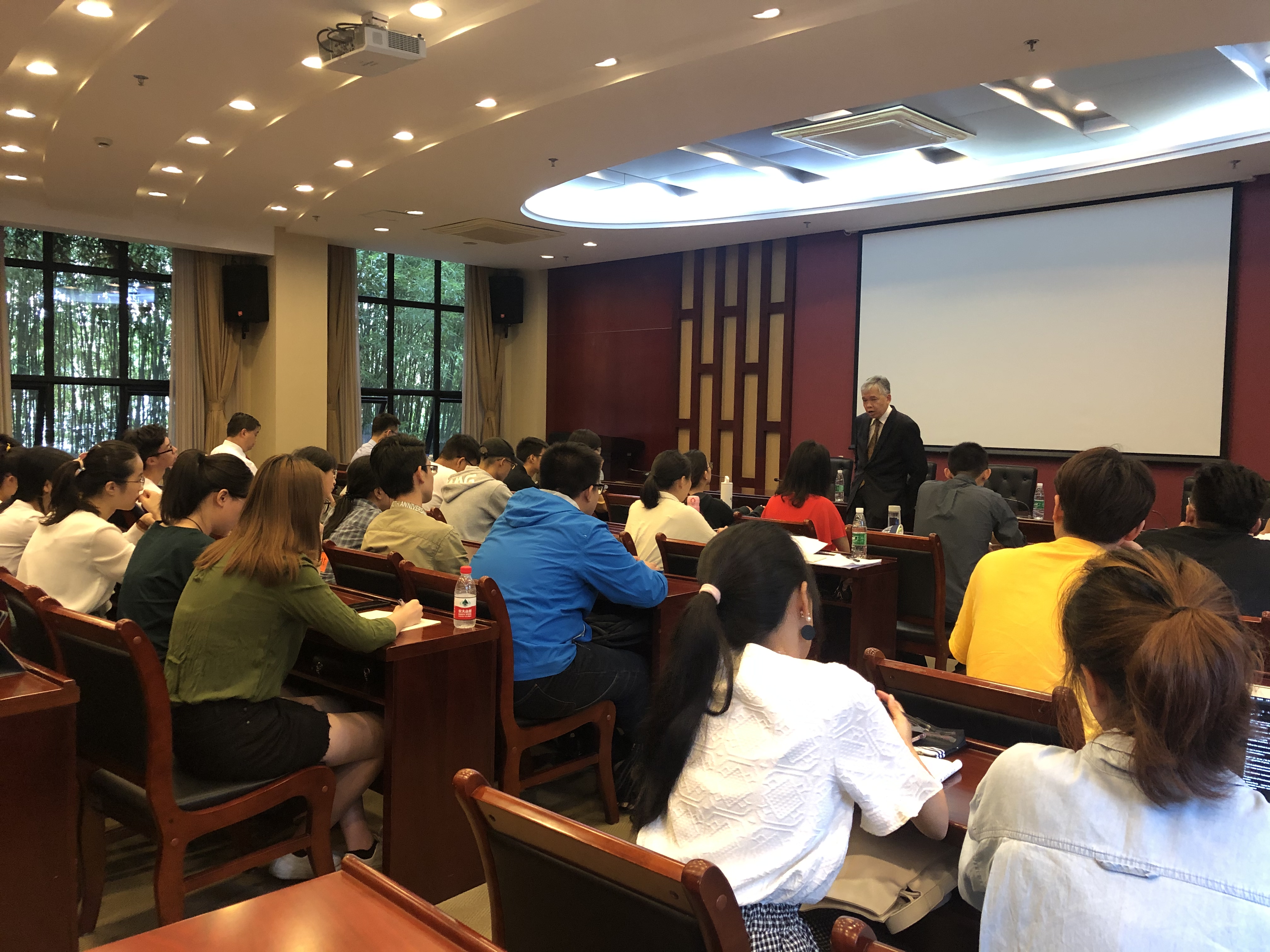讲座后同学们积极提问,Anselmo Reyes教授也绅士、友好地与大家进行了答疑、探讨。讲座中,Anselmo Reyes教授不仅用清楚、易懂的演讲介绍了国际货物买卖海事运输的相关问题,还分享了自身的实务经验。