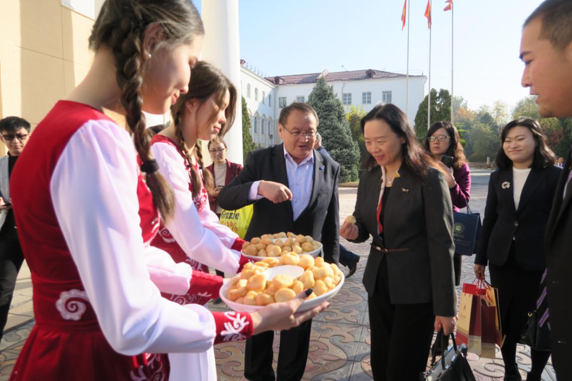 结束访哈行程后,代表团抵达吉尔吉斯斯坦首都比什凯克,开始对吉尔吉斯斯坦国立民族大学、中国-上合基地境外研修中心——吉尔吉斯斯坦丝路之光教育中心进行交流访问。