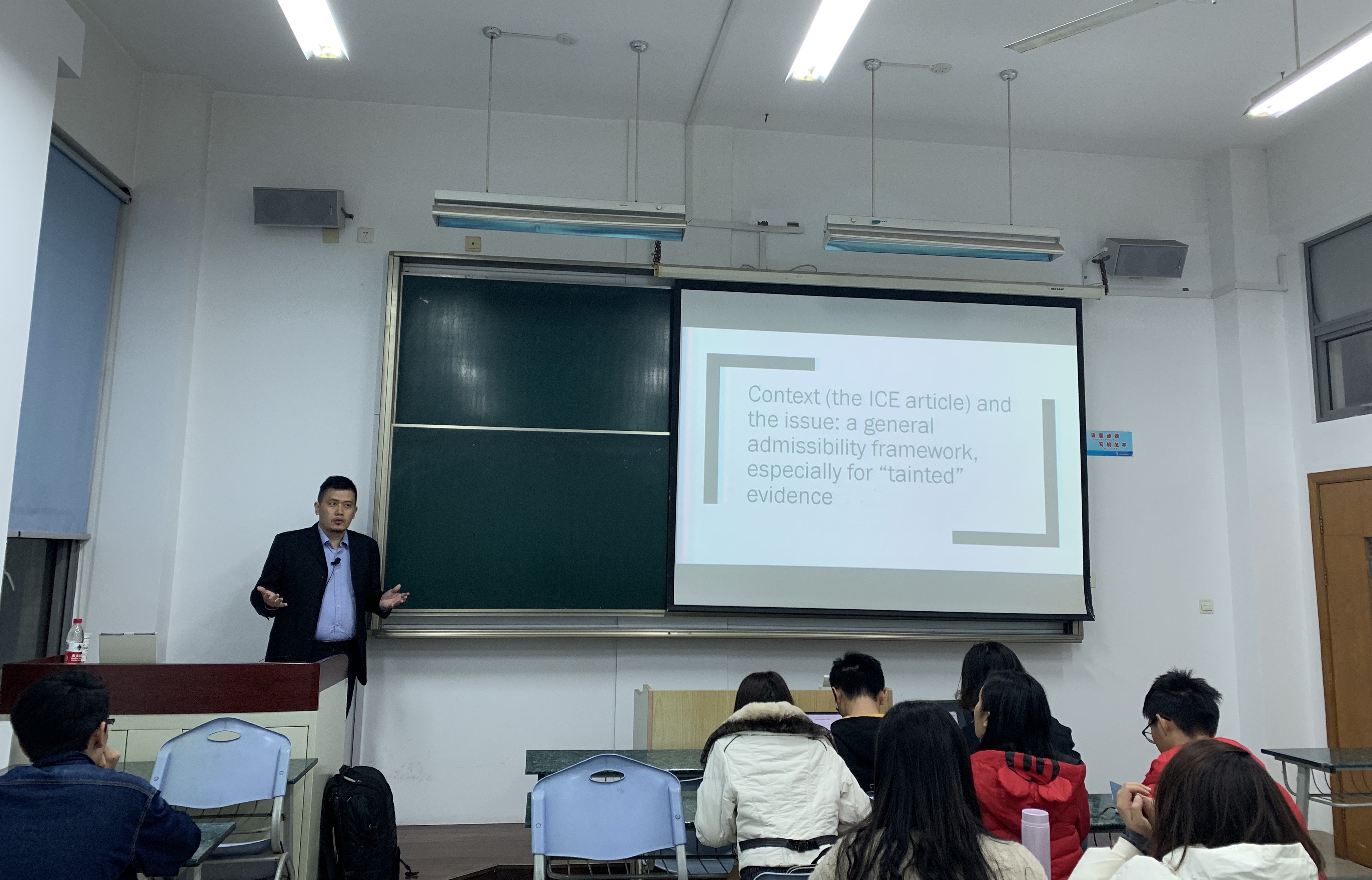 系列讲座中,陈思沅以其多年对国际模拟竞赛的指导经验,分享成为一个mooter所应具备的专业素质以及应对竞赛的若干技巧。其中,陈思沅提到,语言的精准性、赛前对案件的充分了解、提炼论点的能力以及对比赛过程中节奏的把握程度等要素都起着尤为关键的作用。陈思沅就同学们提出的“如何应对评委提出的疑难问题”以及“如何选择案例并进行实操训练”等问题进行解答。此外,陈思沅还以国际公法中的证据法相关问题为主题进行讲座。陈思沅从英美法与大陆法的不同视角出发,阐释了不同法律制度下证据运用的价值次序的差异性问题,更进一步地列举了国际法院的若干案例,就法庭对各国所呈交的不同形式的证据的采纳与否的决定进行比较,并作总结评价。最后,陈思沅与同学们就相关问题展开热烈讨论并积极互动,热情地回答了同学们的疑问。