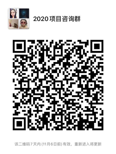 本次咨询面向附件1内项目的申请学生。申请学生请先利用参考网址以及网页上的相关链接查询信息,培养独立搜索信息的能力和习惯。如有问题,请发送邮件至shuplfao@126.com咨询,邮件主题写明“【学生项目咨询+咨询项目名称】”或加入2020年项目咨询微信群(见下方二维码),以便尽快得到回复。
